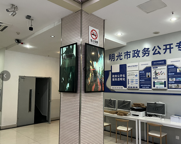 迅博明一批觸摸查詢機(jī)、壁掛廣告機(jī)和液晶拼接屏應(yīng)用于明光市政務(wù)中心和張八嶺鎮(zhèn)政府